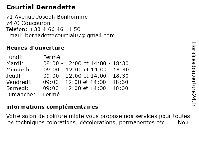 Samedi | 09:00-12:00 et 14:00-18:30 |
