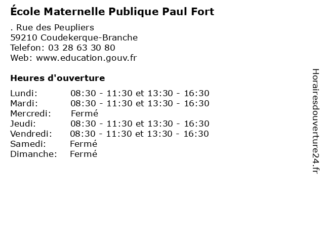 | Mardi | 08:30-11:30 et 13:30-16:30 |