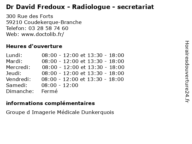 | Lundi | 08:00-12:00 et 13:30-18:00 |