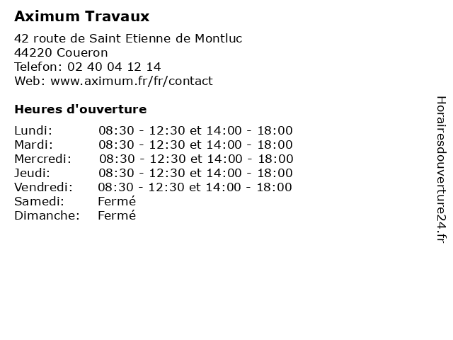 | Lundi | 08:30-12:30 et 14:00-18:00 |