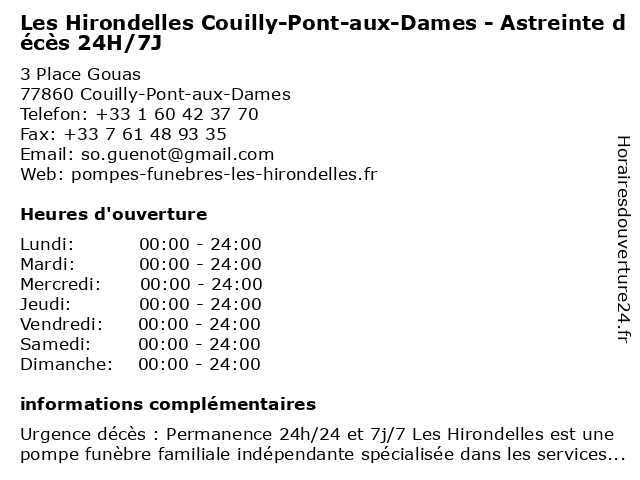 Termes de recherche pour Les Hirondelles Couilly-Pont-aux-Dames - Astreinte décès 24H/7J:les, aux, pont, dames, astreinte, hirondelles, couilly, décès, 24h/7j |