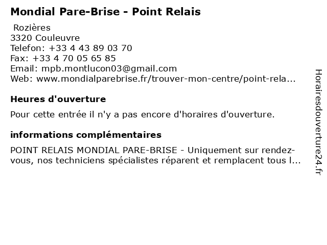 Appeler Mondial Pare-Brise - Point Relais | |