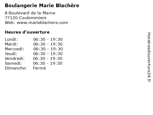 1 Boulangerie Marie Blachère (Distance: 0,29 km) 24B - 26 Rue du Grand Morin, 77120 Coulommiers blachère, boulangerie, marie, pain, pâtisserie, viennoiseries 2 Boulangerie Au Coin Du Pétrin (Distance: 1,32 km) 3-5 rue Beaurepaire, 77120 Coulommiers au, boulangerie, coin, du, pain, patisserie, pétrin, snacking 3 Boulangerie Pâtisserie - La Fromentière (Distance: 4,50 km) 30 place de la Mairie, 77120 Mouroux alimentation, baguette, boulangerie, commerce, fromentière, gâteaux, la, mouroux, pain, pâtisserie 4 La P'tite Boulangerie (Distance: 12,91 km) 67 Rue du Vingt Sept Août, 77163 Mortcerf boulangerie, la, p'tite, pains, patisserie, sandwicherie, viennoiserie 5 Boulangerie Autour du Pain (Distance: 15,83 km) 36 Avenue Franklin Roosevelt, 77260 La Ferté-sous-Jouarre autour, baguette, boulangerie, du, pain, pains, pâtisserie, restauration, viennoiserie 6 Boulangerie Pâtisserie - Chez Cédric et Aurélie (Distance: 19,85 km) 7 rue de l'Yvron, 77540 Courpalay alimentation, aurélie, baguette, boulangerie, chez, commerce, courpalay, cédric, et, gâteaux, pain, pâtisserie |