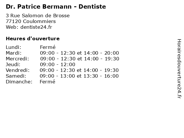 | Mercredi | 09:00-12:30 et 14:00-19:30 |