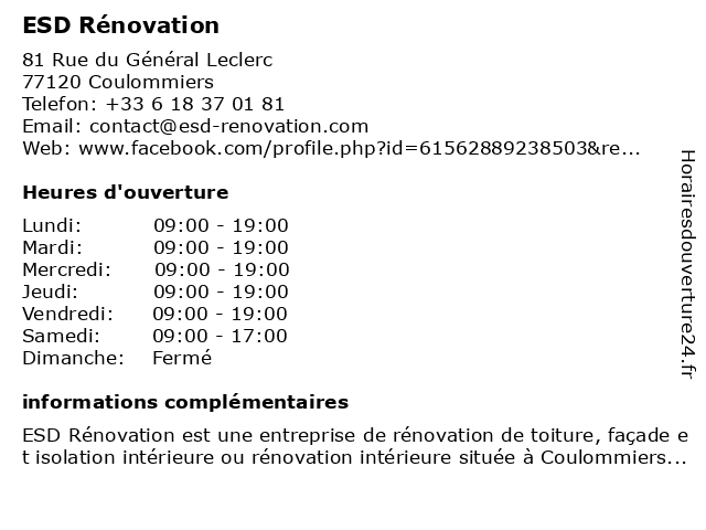 2 Ecole Supérieure du Digital (ESD) (Distance: 56,27 km) 18 bis avenue de la Motte-Picquet, 75007 Paris design, digital, digital création, du, e-commerce, ecole, esd, supérieur, supérieure, web 3 Henry's Décoration (Distance: 2,86 km) 11 Limosin, 77120 Saints architecte, décorateur, décoration, henry's, intérieur, rénovation 4 SOS Pare-Brise + (Distance: 28,96 km) 45 Rue du Général Leclerc, 77370 Nangis auto, brise, pare, phare, remplacement, rénovation, réparation, sos, vitrage, véhicule 5 Restor’A9 - La Clinique du Volet (Distance: 36,78 km) 167 Avenue Maurice Berteaux, 94420 Le Plessis-Trévise bois, clinique, du, entreprise, la, métal, radiateurs, repeindre, restor’a9, rénovation, société, volet, volets 6 Amn Design (Distance: 37,12 km) 26 Avenue Champabon, 77520 Donnemarie-Dontilly amn, architecte, design, décorateur, décoration, intérieur, rénovation |