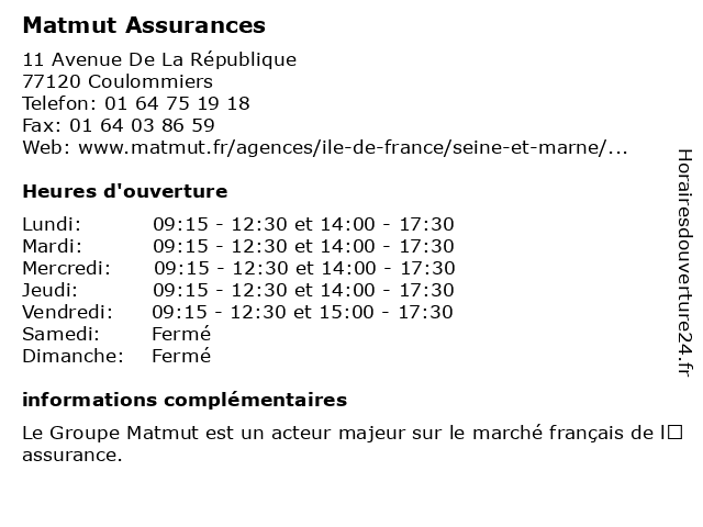 | Mardi | 09:15-12:30 et 14:00-17:30 |