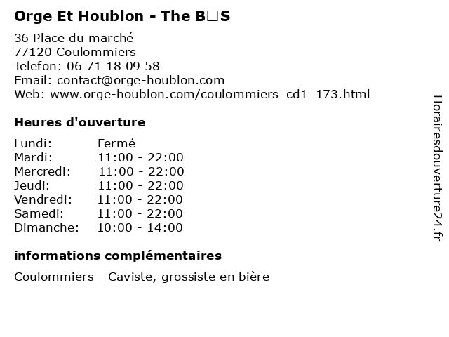 | Lundi | Fermé |