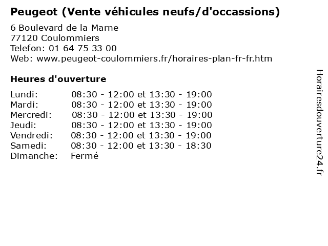 | Lundi | 08:30-12:00 et 13:30-19:00 |