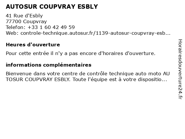 | Appeler AUTOSUR COUPVRAY ESBLY | |
