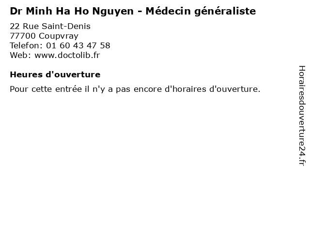 | Appeler Dr Minh Ha Ho Nguyen - Médecin généraliste | |