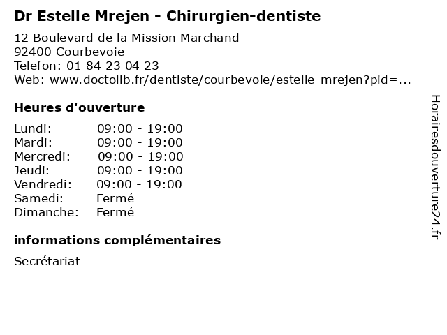 1 Maître Estelle Cupillard - Avocate (Distance: 0,56 km) 20 Avenue Andre Prothin, 92400 Courbevoie avocate, avocats, civils, cupillard, droits, estelle, juridiques, maître 2 Dr. Estelle Sebban - Dentiste (Distance: 0,60 km) 15 Parvis la Defense, 92800 Puteaux dentiste, docteur, dr., estelle, medecins, sante, sebban 3 Maître Estelle Garnier - Avocate (Distance: 0,87 km) 4-6 Avenue d'Alsace, 92400 Courbevoie avocate, avocats, civils, droits, estelle, garnier, juridiques, maître 4 Maître Estelle Verdet - Avocate (Distance: 1,15 km) 1-2 Place des Saisons, 92400 Courbevoie avocate, avocats, cabinet, conseils, contentieux, estelle, juridique, justice, litiges, maître, services, verdet 5 Maître Estelle Sourmaille - Avocate (Distance: 1,15 km) 1-2 Place des Saisons, 92400 Courbevoie avocate, avocats, cabinet, conseils, contentieux, estelle, juridique, justice, litiges, maître, services, sourmaille 6 Maître Estelle Lay - Avocate (Distance: 1,15 km) 1-2 Place des Saisons, 92400 Courbevoie avocate, avocats, cabinet, conseils, contentieux, estelle, juridique, justice, lay, litiges, maître, services |