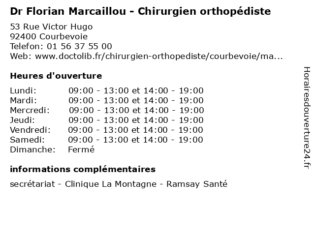 | Lundi | 09:00-13:00 et 14:00-19:00 |