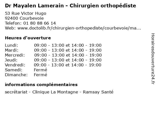 | Lundi | 09:00-13:00 et 14:00-19:00 |