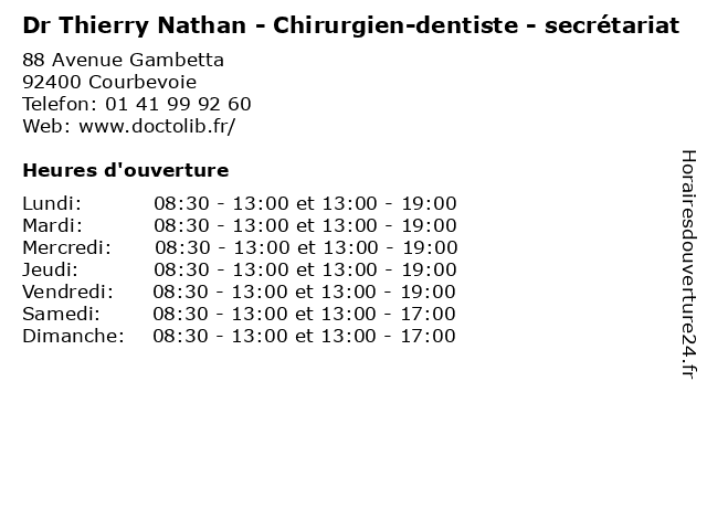 | Lundi | 08:30-13:00 et 13:00-19:00 |