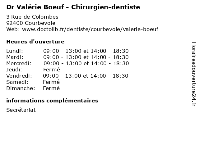 | Mercredi | 09:00-13:00 et 14:00-18:30 |