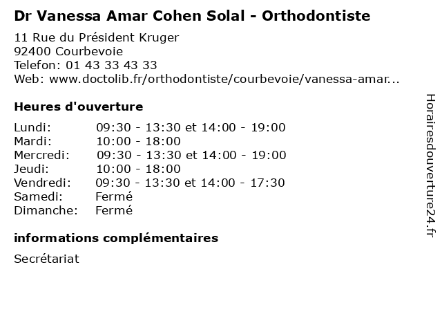 1 Dr Delphine Burel - Orthodontiste (Distance: 0,06 km) 36 Rue Jean Pierre Timbaud, 92400 Courbevoie burel, delphine, dr, medecin, ortho, orthodontiste, sante 2 Dr Mariam Boukili - Orthodontiste (Distance: 0,48 km) 7 Rue Baudin, 92400 Courbevoie boukili, consultation, docteur, dr, mariam, med, médecin, médecine, orthodontiste, secrétariat, traitement 4 Dr Adriana Tornea - Orthodontiste - secrétariat (Distance: 0,64 km) 88 Avenue Gambetta, 92400 Courbevoie adriana, consultation, docteur, dr, med, médecin, médecine, orthodontiste, secrétariat, tornea, traitement 5 Shirly Cohen - Ostéopathe (Distance: 0,78 km) 44 Rue Armand Silvestre, 92400 Courbevoie cohen, osteo, osteopathe, ostéopathe, sante, shirly, soins 6 Dr Jennifer Lassaire - Orthodontiste (Distance: 0,92 km) 39 Boulevard de la Paix, 92400 Courbevoie dent, dentiste, docteur, dr, jennifer, lassaire, orthodontiste, soins |