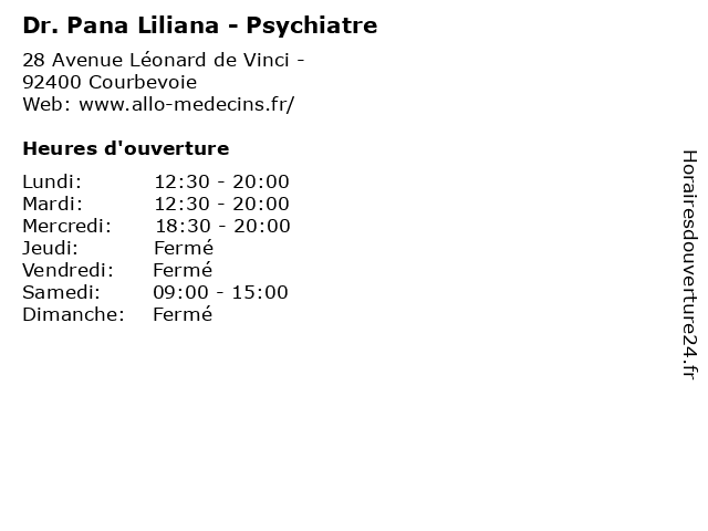 | Lundi | 12:30-20:00 |