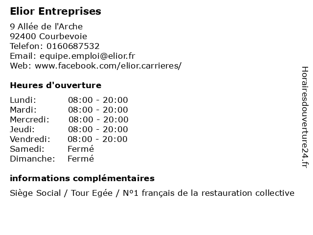 1 Elior Entreprises (Distance: 0,33 km) 18 Rue Du Capitaine Guynemer, 92400 Courbevoie elior, entreprises, restaurants 2 Elior Entreprises (Distance: 0,47 km) Immeuble Elysees, 92800 Puteaux elior, entreprises, restaurants 3 Elior Entreprises (Distance: 1,20 km) 61 Rue Salvador Allende, 92000 Nanterre elior, entreprises, restaurants 4 Elior Entreprises (Distance: 1,77 km) 2 Bd Jacques Germain Soufflot, 92000 Nanterre elior, entreprises, restaurants 5 Elior Entreprises (Distance: 1,78 km) 30 Boulevard Emile Zola, 92000 Nanterre elior, entreprises, restaurants 6 Elior Entreprises (Distance: 4,31 km) 50 Rue Deguingand, 92300 Levallois Perret elior, entreprises, restaurants |