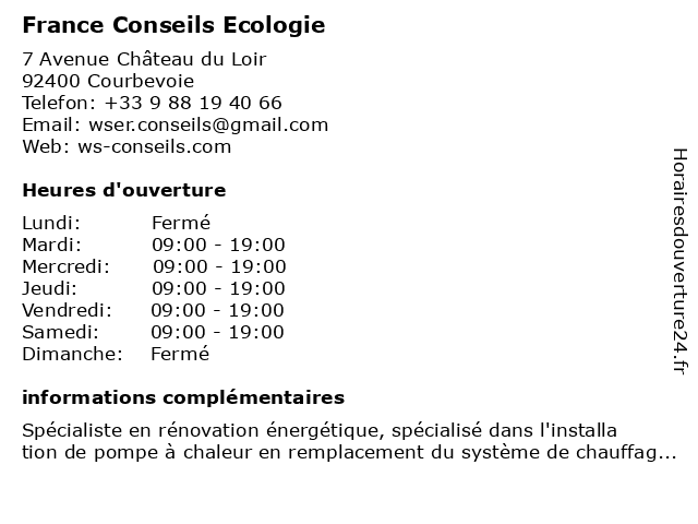 Horaires d'ouverture |