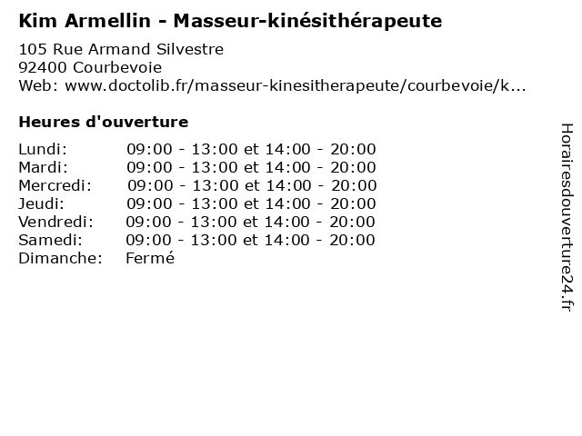 | Lundi | 09:00-13:00 et 14:00-20:00 |