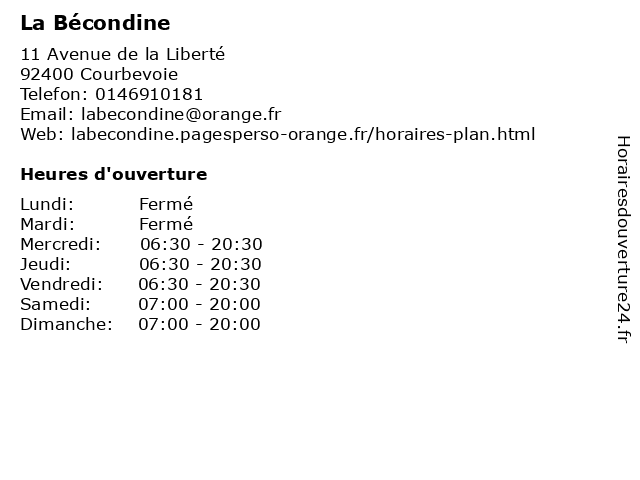 | Lundi | Fermé |