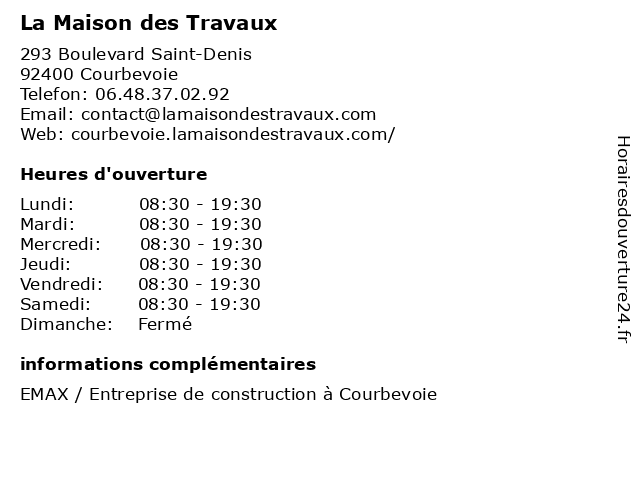 | 1 La Maison des Travaux (Distance: 1,84 km) 120 Rue Jean-Jaurès, 92300 Levallois-Perret courtiers, des, financement, habitation, la, maison, travaux 2 La Maison des Travaux (Distance: 3,27 km) 115 rue Cardinet, 75017 Paris agences, constructeur, constructions, des, la, maison, neuve, travaux 3 La Maison des Travaux (Distance: 5,21 km) 22 Rue Desbassayns de Richemont, 92150 Suresnes courtiers, des, financement, habitation, la, maison, travaux 4 La Maison des Travaux (Distance: 8,37 km) 41 Avenue Georges Bernanos, 75005 Paris courtiers, des, financement, habitation, la, maison, travaux 5 La Maison des Travaux (Distance: 8,43 km) 14 rue Charles V, 75004 Paris batiment, des, devis, la, maison, superficie, travaux 6 La Maison des Travaux (Distance: 8,93 km) 34 Avenue Victor Cresson, 92130 Issy-les-Moulineaux courtiers, des, financement, habitation, la, maison, travaux |
