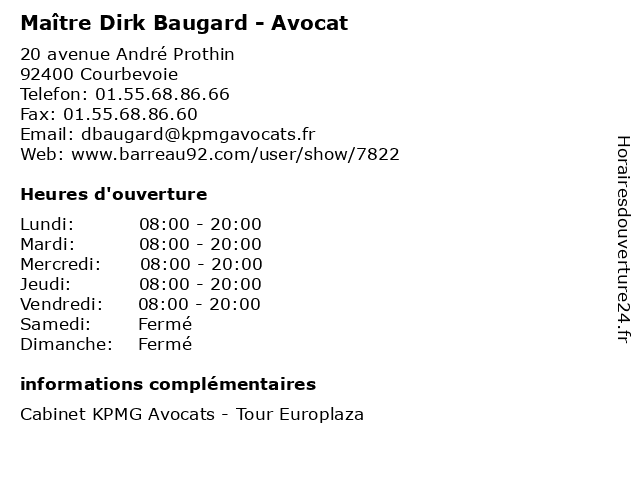 1 Maître Dirk Fangmann - Avocat (Distance: 4,22 km) 45 Avenue Victor Hugo, 75116 Paris avocat, avocats, cabinet, conseils, contentieux, dirk, fangmann, juridique, justice, litiges, maître, services 2 Maître Dirk Andreae-Nehlsen - Avocat (Distance: 6,90 km) 8 villa Poirier, 75015 Paris andreae, avocat, avocats, cabinet, conseils, contentieux, dirk, juridique, justice, litiges, maître, nehlsen, services 3 Dirk Bikkembergs (Distance: 20,37 km) 1 Rue du Président Kennedy, 78340 Les Clayes sous Bois beaute, bijoux, bikkembergs, chaussures, dirk, enfants, maison, mode femme, mode homme, restaurant, service, sport 4 Maître Guillaume Martenot - Avocat (Distance: 0,00 km) 20 Avenue André Prothin, 92400 Courbevoie avocat, avocats, civils, droits, guillaume, juridiques, martenot, maître 5 Maître Cédric Philibert - Avocat (Distance: 0,00 km) 20 Avenue Andre Prothin, 92400 Courbevoie avocat, avocate, avocats, civils, cédric, droits, juridiques, maître, philibert 6 Maître Olivier Schmitt - Avocat (Distance: 0,00 km) 20 Avenue Andre Prothin, 92400 Courbevoie avocat, avocate, avocats, civils, droits, juridiques, maître, olivier, schmitt |