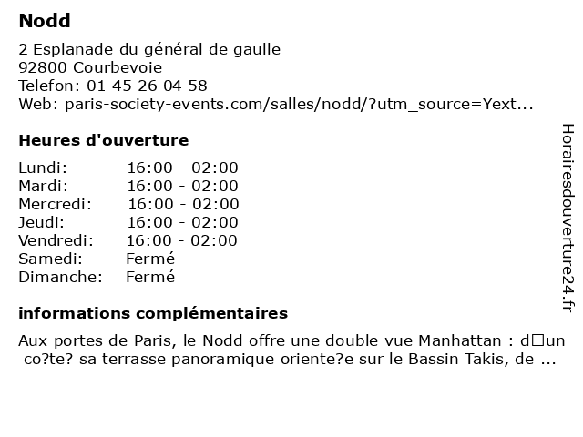 Termes de recherche pour Nodd:bar, restaurants, boite de nuit, salle de réception, nodd, salle de bal, club de danse |