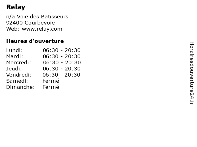 1 Relay (Distance: 0,49 km) n/a Défense, 92800 Puteaux beverages, food, gifts, paper, printing, relay, service products, telephone 2 Relay (Distance: 1,87 km) n/a Rue Celestin Hebert, 92000 Nanterre beverages, food, gifts, paper, printing, relay, service products, telephone 3 Relay (Distance: 3,57 km) n/a Nanterre Ville, 92000 Nanterre beverages, food, gifts, paper, printing, relay, service products, telephone 4 Relay (Distance: 3,90 km) , Charles de Gaule Etoile, 75017 Paris beverages, books in original, e-readers, ebooks, food, large format books, pocket books, printing, relay, service products, variety of kiosk articles 5 Relay (Distance: 4,22 km) . Place du 11 novembre 1918, 75010 Paris cafe, chaussures, enfants, homme, lingerie, mode femme, relay, restaurant, service, shopping 6 Relay (Distance: 4,62 km) , Avenue de la Redoute,, 92600 Asnières-sur-Seine beverages, books in original, e-readers, ebooks, food, large format books, pocket books, printing, relay, service products, variety of kiosk articles |