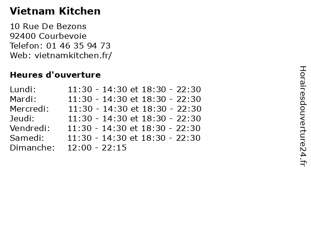 | Samedi | 11:30-14:30 et 18:30-22:30 |