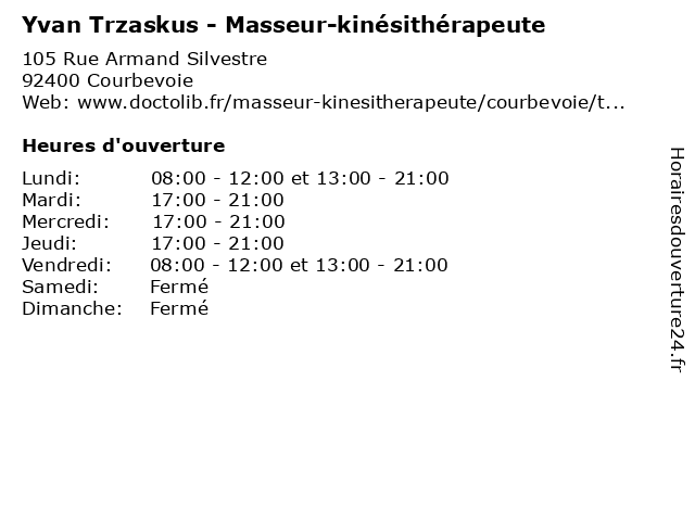 | Vendredi | 08:00-12:00 et 13:00-21:00 |
