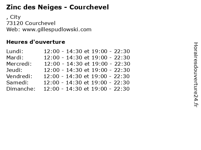 | Vendredi | 12:00-14:30 et 19:00-22:30 |