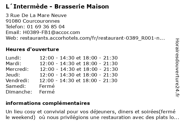 | Mercredi | 12:00-14:30 et 18:00-21:30 |