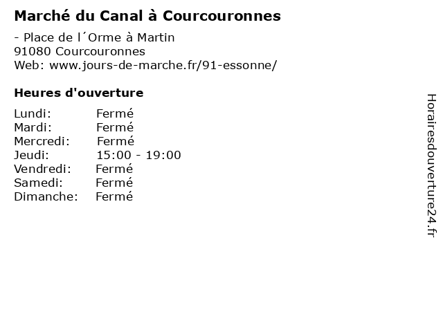 1 La Poste - Courcouronnes Canal (Distance: 0,15 km) 8 Avenue de l'Orme À Martin, 91080 Courcouronnes agence, canal, colis, courcouronnes, courriers, expédition, la, postale, poste, relais 2 Le Canal - rue du Pont Amar (Distance: 0,20 km) 42 Rue du Pont Amar, 91080 Courcouronnes amar, canal, caregivers houses, child care, du, family home, home care, kindergartens, le, micro-nurseries, parental home, pont, rue 3 Tabac Presse Loto Du Canal (Distance: 0,23 km) 4 Allée Jacques Monod, 91080 Courcouronnes canal, du, loto, presse, tabac 4 5 Marché à Évry (Distance: 1,04 km) - des Loges, 91000 Évry frutas, hortalizas, marché, mercado, verduras, évry 6 Marché du Centre à Courcouronnes (Distance: 1,43 km) - Place de Thorigny, 91080 Courcouronnes centre, courcouronnes, du, frutas, hortalizas, marché, mercado, verduras |
