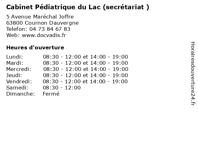 | Lundi | 08:30-12:00 et 14:00-19:00 |