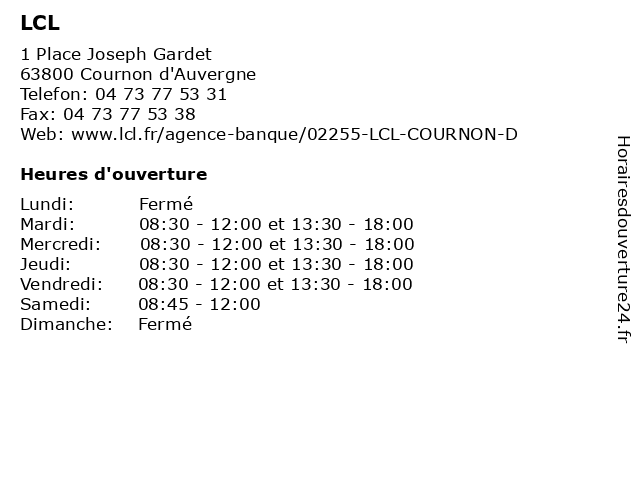 1 2 LCL (Distance: 8,52 km) 6 Place Mirabeau, 63100 Clermont-Ferrand agence, assurance, bancaire, banque, lcl 3 LCL (Distance: 9,02 km) 2 Avenue du Mont Doré, 63110 Beaumont agence, assurance, bancaire, banque, lcl 4 LCL (Distance: 9,41 km) 3 Place Délille, 63000 Clermont-Ferrand agence, assurance, bancaire, banque, lcl 5 6 LCL (Distance: 11,20 km) 2 Place Charles de Gaulle, 63400 Chamalières agence, assurance, bancaire, banque, lcl |