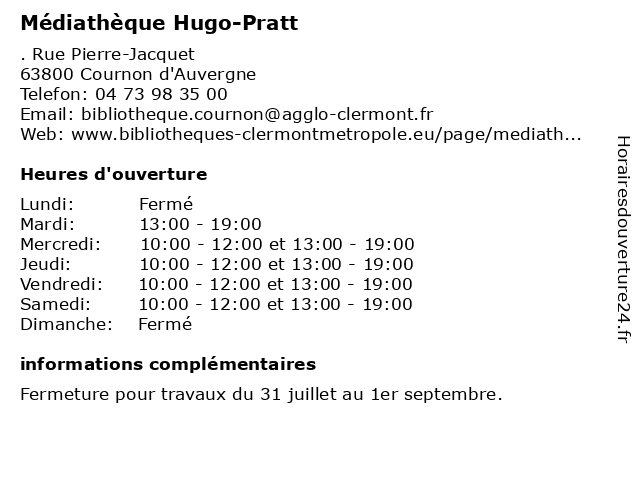 | Vendredi | 10:00-12:00 et 13:00-19:00 |