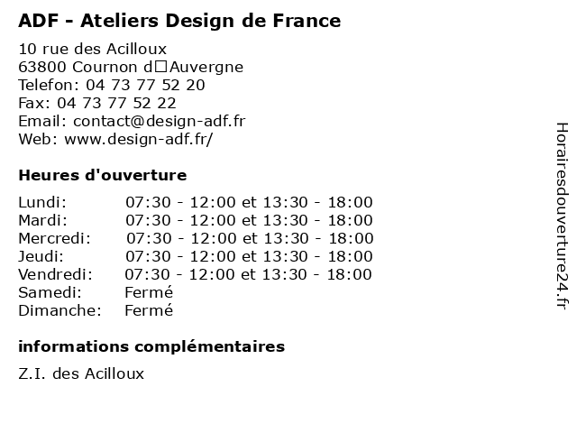 | Lundi | 07:30-12:00 et 13:30-18:00 |