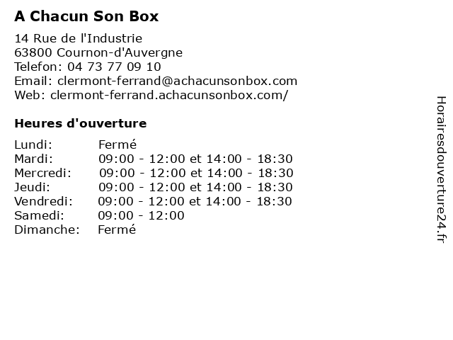 1 A Chacun son Box (Distance: 7,47 km) 44 impasse Lamartine, 63000 Clermont-Ferrand accueil, archivage, box, chacun, local, location, rangement, son, stockage 2 Welcom | Téléphone, reconditionné, réparation, forfait, box internet (Distance: 2,62 km) Rue Jean Mermoz, 63670 Le Cendre accessoires, bouygues telecom, box, box internet, box internet fibre, coriolis télécom, diagnostic téléphone, forfait, forfait mobile, internet, objets connectés, occasion, reconditionné, reconditionnés, reprise de téléphone, reprise iphone, revendez votre téléphone actuel, réparation, réparation téléphone, téléphone, téléphones neufs, téléphonie mobile, vendre son ancien téléphone, welcom, éligibilité à la fibre 3 Terre de Son (Distance: 4,23 km) 33 Boulevard Gustave Flaubert, 63000 Clermont-Ferrand business, clermont, de, ferrand, guitar, instruments, music, piano, son, store, terre 4 Welcom | Téléphone, reconditionné, réparation, forfait, box internet (Distance: 4,74 km) Avenue de l'Europe, 63370 Lempdes accessoires, bouygues telecom, box, box internet, box internet fibre, coriolis télécom, diagnostic téléphone, forfait, forfait mobile, internet, objets connectés, occasion, reconditionné, reconditionnés, reprise de téléphone, reprise iphone, revendez votre téléphone actuel, réparation, réparation téléphone, téléphone, téléphones neufs, téléphonie mobile, vendre son ancien téléphone, welcom, éligibilité à la fibre 5 Welcom | Téléphone, reconditionné, réparation, forfait, box internet (Distance: 5,45 km) Boulevard Saint-Jean, 63100 Clermont-Ferrand accessoires, bouygues telecom, box, box internet, box internet fibre, coriolis télécom, diagnostic téléphone, forfait, forfait mobile, internet, objets connectés, occasion, reconditionné, reconditionnés, reprise de téléphone, reprise iphone, revendez votre téléphone actuel, réparation, réparation téléphone, téléphone, téléphones neufs, téléphonie mobile, vendre son ancien téléphone, welcom, éligibilité à la fibre 6 Welcom | Téléphone, reconditionné, réparation, forfait, box internet (Distance: 7,22 km) 5 Place de Jaude, 63000 Clermont-Ferrand accessoires, bouygues telecom, box, box internet, box internet fibre, coriolis télécom, diagnostic téléphone, forfait, forfait mobile, internet, objets connectés, occasion, reconditionné, reconditionnés, reprise de téléphone, reprise iphone, revendez votre téléphone actuel, réparation, réparation téléphone, téléphone, téléphones neufs, téléphonie mobile, vendre son ancien téléphone, welcom, éligibilité à la fibre |