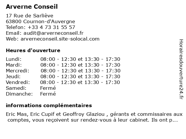 | Mardi | 08:00-12:30 et 13:30-17:30 |