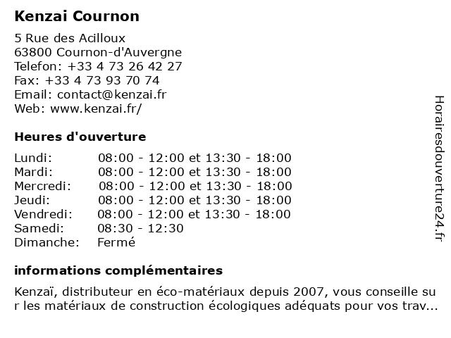 | Lundi | 08:00-12:00 et 13:30-18:00 |
