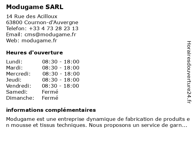 | Lundi | 08:30-18:00 |