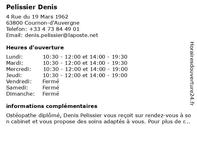 | Mercredi | 10:30-12:00 et 14:00-19:00 |