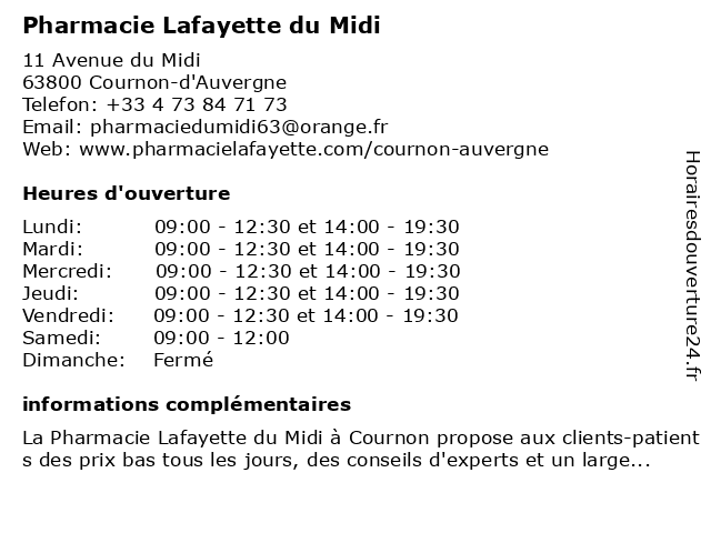 Pharmacie Lafayette du Midi à Cournon-d'Auvergne