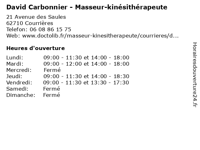 | Mardi | 09:00-12:00 et 14:00-18:00 |