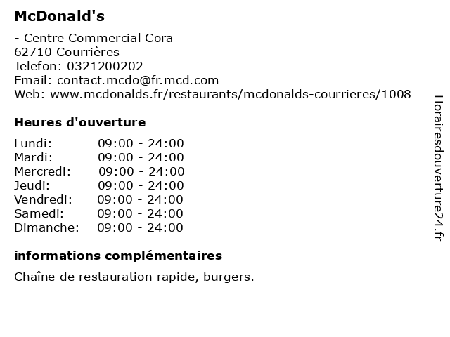 1 McDonald's (Distance: 3,96 km) - Route De Oignies, 62220 Carvin burgers, fast, food, hamburgers, mcdonald's, rapide, restaurant, restauration 2 McDonald's (Distance: 8,74 km) - Centre Commercial Vendin 2, 62880 Vendin-le-Vieil burgers, fast, food, hamburgers, mcdonald's, rapide, restaurant, restauration 3 McDonald's (Distance: 12,20 km) - Rue François Courtin, 62800 Liévin burgers, fast, food, hamburgers, mcdonald's, rapide, restaurant, restauration 4 McDonald's (Distance: 12,38 km) - Route Nationale 50, 62490 Fresnes-lès-Montauban burgers, fast, food, hamburgers, mcdonald's, rapide, restaurant, restauration 5 McDonald's (Distance: 13,94 km) - Parc d'activité de l'Epinette, 59113 Seclin burgers, fast, food, hamburgers, mcdonald's, rapide, restaurant, restauration 6 McDonald's (Distance: 14,11 km) . rue de l'Avenir, 59480 Illies burgers, fast, food, hamburgers, illies, mcdonald's, rapide, restaurant, restauration |