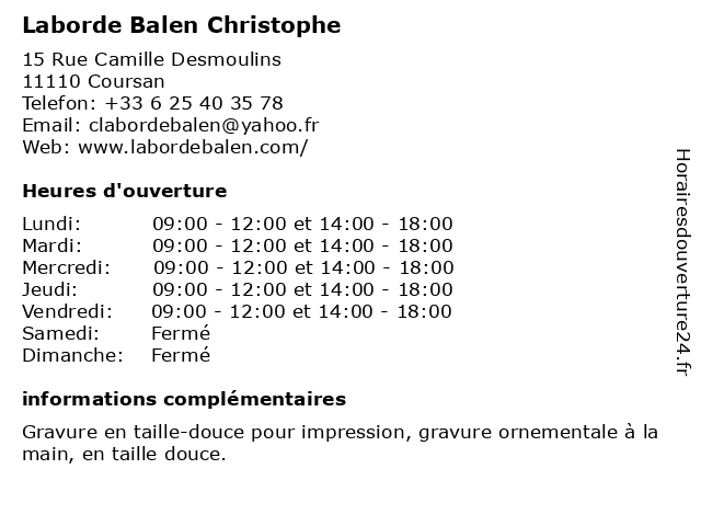 | Mardi | 09:00-12:00 et 14:00-18:00 |