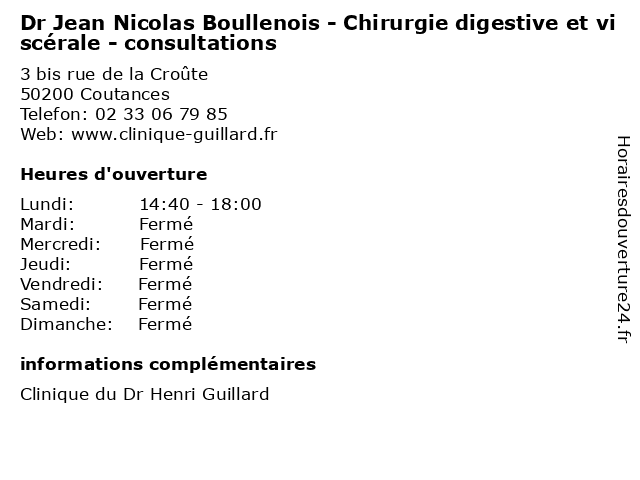 1 Dr David Faucher - Chirurgie digestive et viscérale - consultations (Distance: 0,00 km) 3 bis rue de la Croûte, 50200 Coutances chirurgie, consultation, consultations, david, digestive, docteur, dr, et, faucher, med, médecin, médecine, traitement, viscérale 2 Dr Mathieu Lacroix - Chirurgie digestive et viscérale - consultations (Distance: 0,00 km) 3 bis rue de la Croûte, 50200 Coutances chirurgie, consultation, consultations, digestive, docteur, dr, et, lacroix, mathieu, med, médecin, médecine, traitement, viscérale 3 Dr Claude Largenton - Chirurgie digestive et viscérale - consultations (Distance: 0,00 km) 3 bis rue de la Croûte, 50200 Coutances chirurgie, claude, consultation, consultations, digestive, docteur, dr, et, largenton, med, médecin, médecine, traitement, viscérale 4 Dr Fabrice Thomas - Chirurgie digestive et viscérale - consultations (Distance: 0,00 km) 3 bis rue de la Croûte, 50200 Coutances chirurgie, consultation, consultations, digestive, docteur, dr, et, fabrice, med, médecin, médecine, thomas, traitement, viscérale 5 Dr Lotfi Bouayad Agha- Anesthésie réanimation - consultations (Distance: 0,00 km) 3 bis rue de la Croûte, 50200 Coutances agha, anesthésie, bouayad, consultation, consultations, docteur, dr, lotfi, med, médecin, médecine, réanimation, traitement 6 Dr Radovola Idialisoa - Anesthésie réanimation - consultations (Distance: 0,00 km) 3 bis rue de la Croûte, 50200 Coutances anesthésie, consultation, consultations, docteur, dr, idialisoa, med, médecin, médecine, radovola, réanimation, traitement |