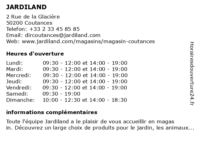 | Dimanche | 10:00-12:30 et 14:00-18:30 |