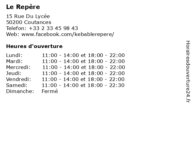| Samedi | 11:00-14:00 et 18:00-22:30 |